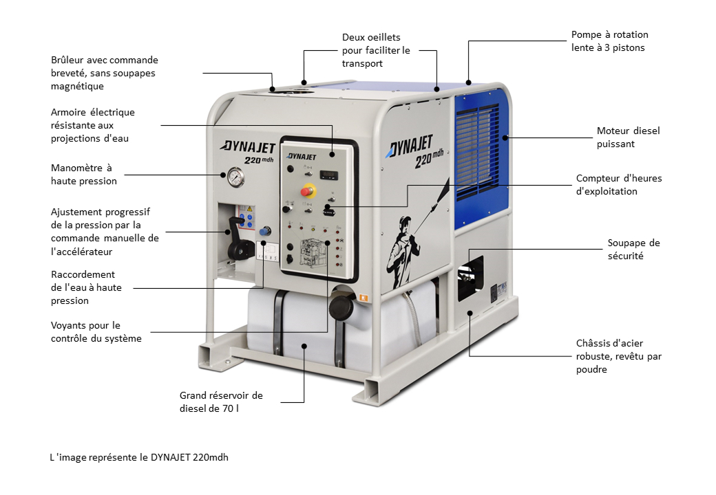 Compact, puissant et polyvalent, ce sont les nettoyeurs haute pression à eau chaude et froide de la nouvelle classe mdh de DYNAJET! Le 350mdh peut être fixé sur une palette ou être équipé de roues pour faciliter le transport. Par ce fait une variété d'applications est possibles. En plus, le module peut être installé fix dans une camionnette ou une remorque. L'alimentation en eau est simplement possible par un flexible d'alimentation qui est relié à la conduite d'eau.